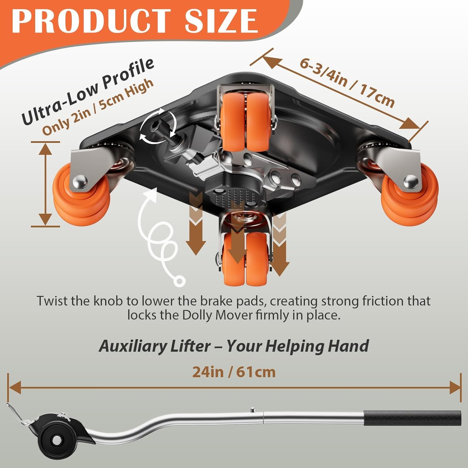 LOW-PROFILE & EASY SETUP – At just 2 inches high, the dolly slides easily under furniture and appliances. Combined with the included furniture lifter tool, you can raise and position heavy items with minimal effort