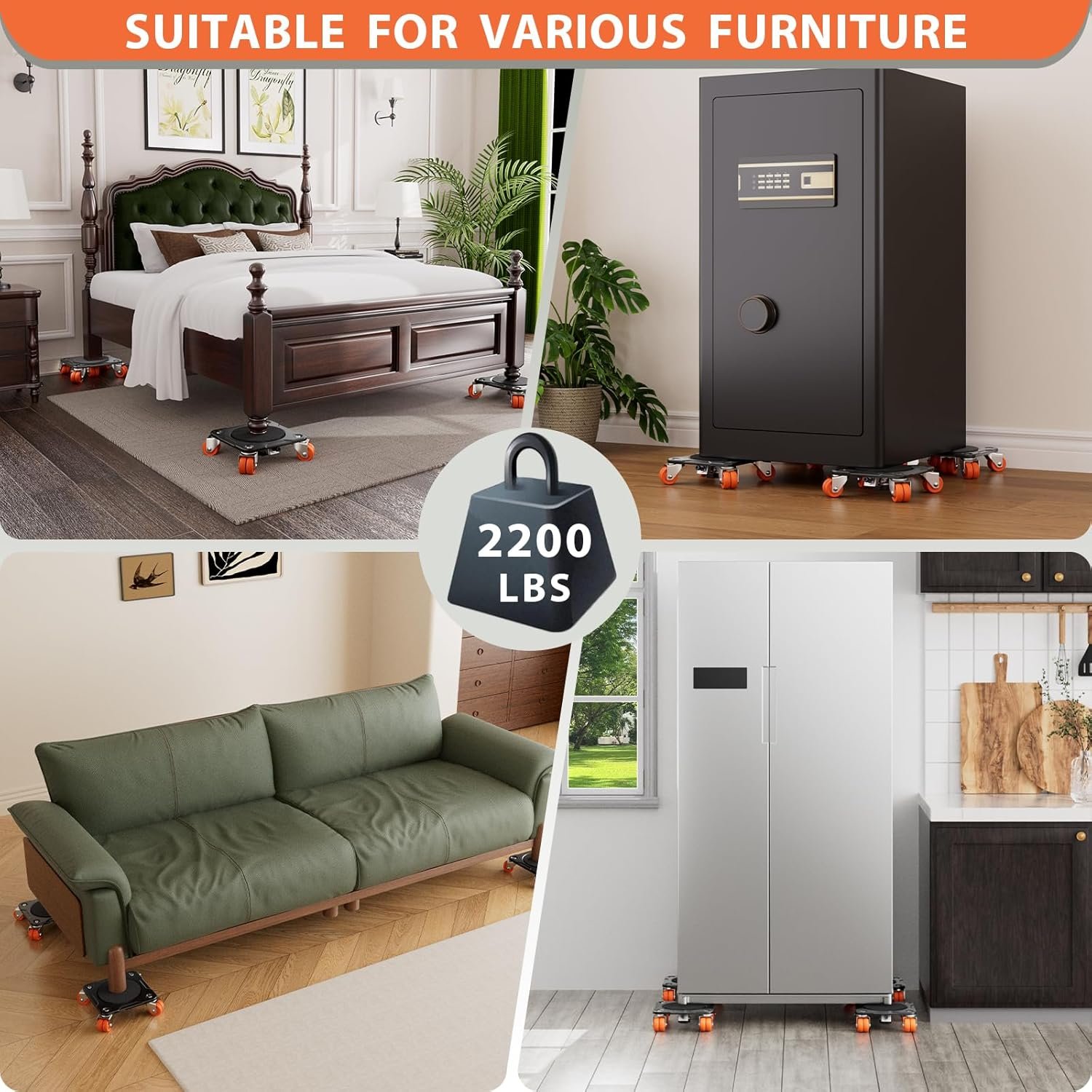 HEAVY LOAD CAPACITY – Each dolly supports up to 550 lbs, with a set of four reaching 2200 lbs under tested static conditions. Safe, strong, and perfect for anyone needing furniture lifters for heavy furniture