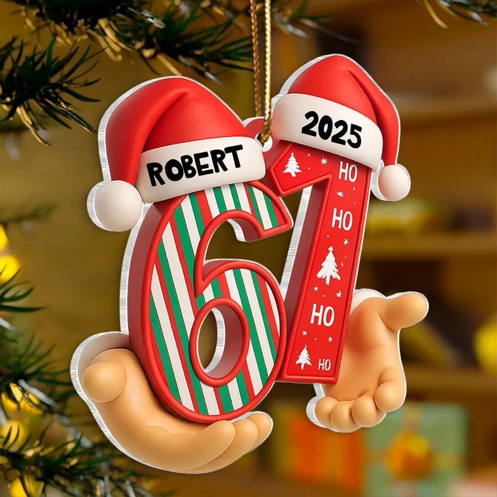 Personalized Six Seven 67 Christmas Ornament, 3D Effect Pattern Acrylic Santa Hat, Custom Name Teen Slang Gift, Gen Alpha Grandkid Meme, Viral Trend Keepsake Decoration 2025