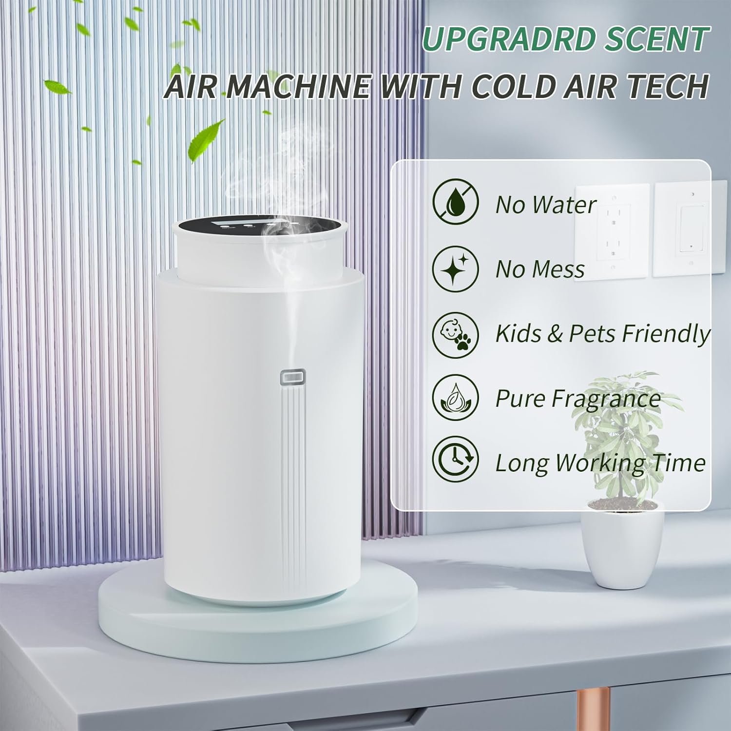 Multiple Ways Placement Options: Our scent air machine for home features 3 ways placement. You can simply place it on the table or other flat surface for easy access. Or you can attach it to the wall or the ceiling of your bedroom, living room, office, it won’t take up your space.