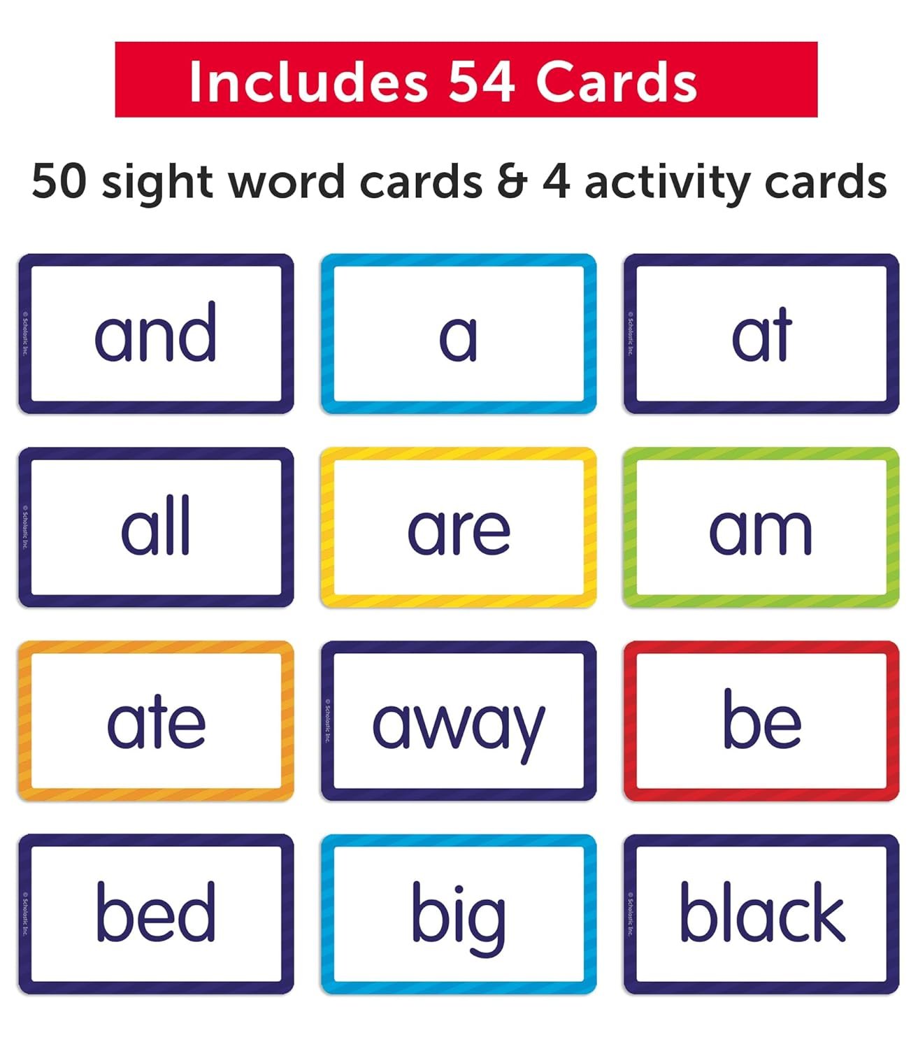 Give your child a head start in reading with these colorful, double-sided Sight Words Flash Cards that feature the first 100 words from the Fry List. An essential tool in building reading fluency! Includes 54 cards: