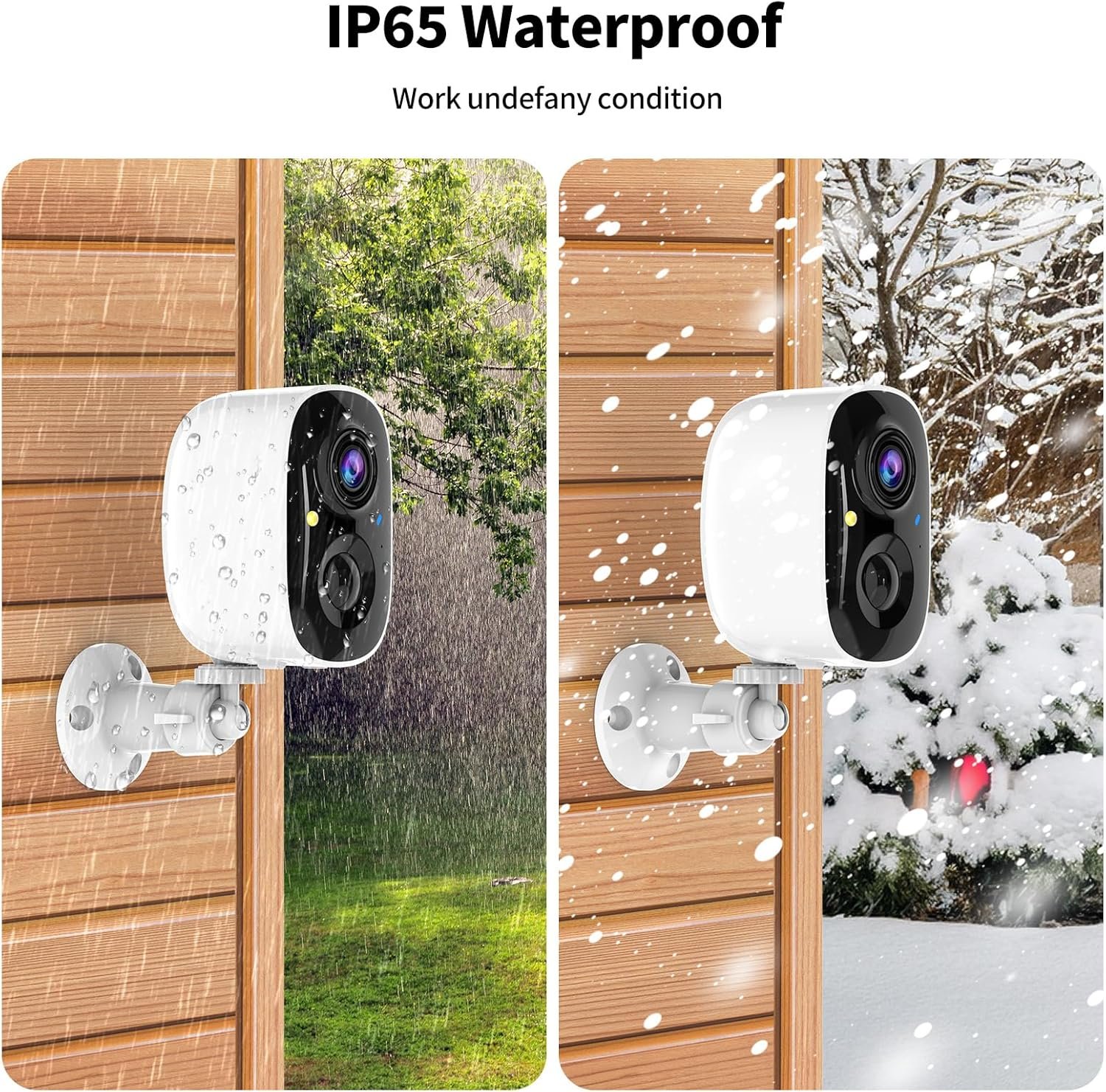 IP65 Weatherproof & Rechargeable Battery: Built to endure rain, snow, and dust with an IP65 waterproof rating, this camera works flawlessly indoors or outdoors. Its long-lasting, rechargeable battery supports placement in any location, ideal chioce for homes, garages, or sheds