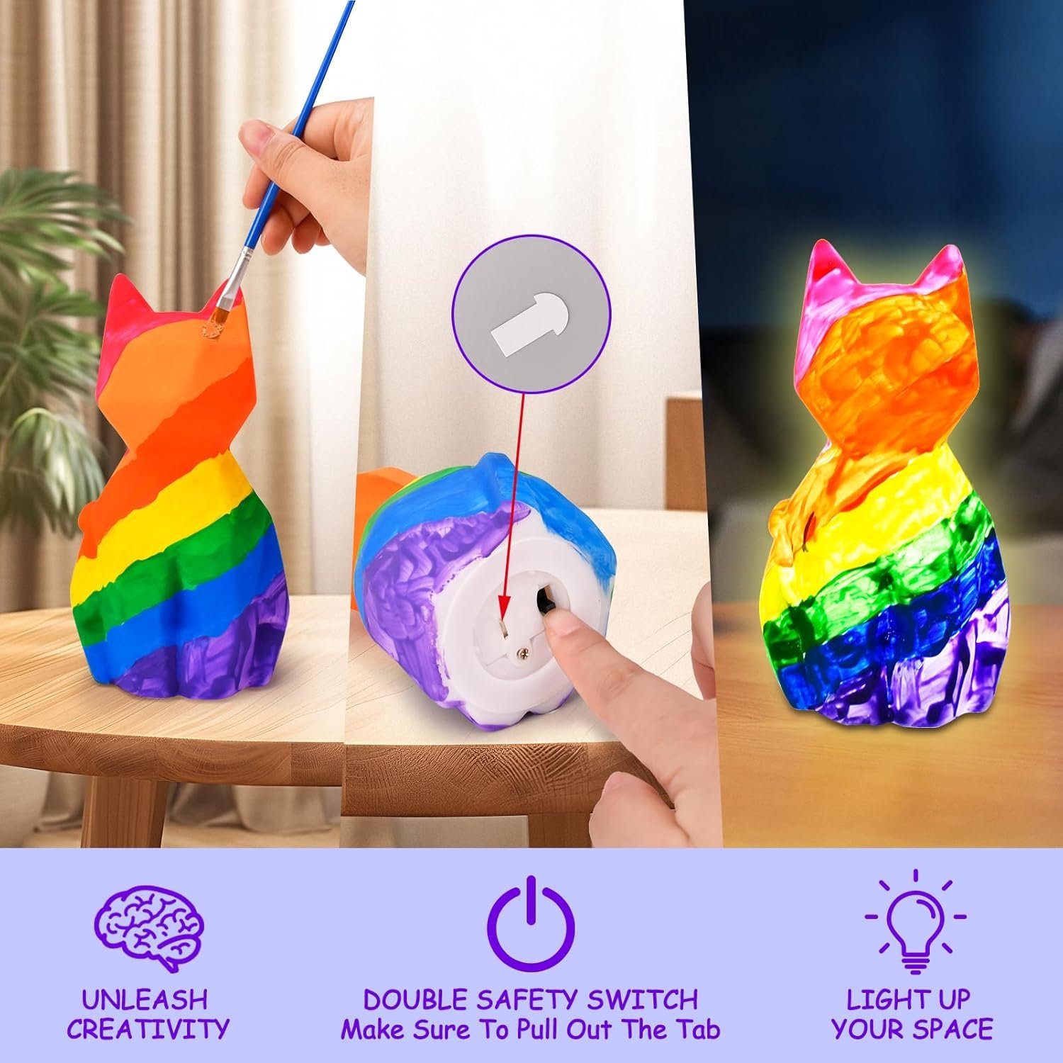 Art Supplies for Girls Boy Ages 6-12: The craft set includes Cat Lamp (5.2×2.8x3inch), 12 Paint Pots, 2 brushes, 1 palette, 1 apron. This cat-themed coloring toy offers a complete art supplies for kids 9-12, delivering an experience that blends fun with learning