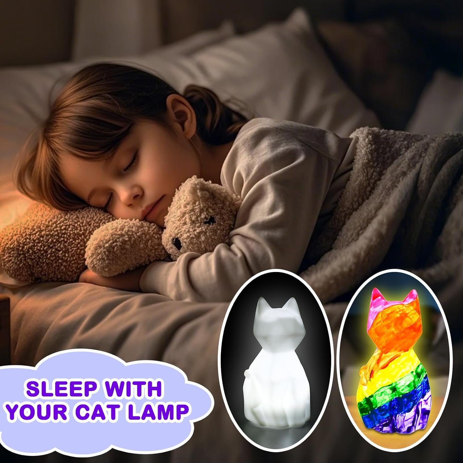 Stocking Stuffers for Kids: This hand-painted cat lamp lights up by a switch at the base, serving both as part of your everyday home decor and as a bedside night light. The best Christmas gift for children aged 6-14 in 2025. Also suitable as Valentine’s Day gifts for Kids, Easter gifts for kids, Halloween crafts for kids, christmas gifts for grandkids