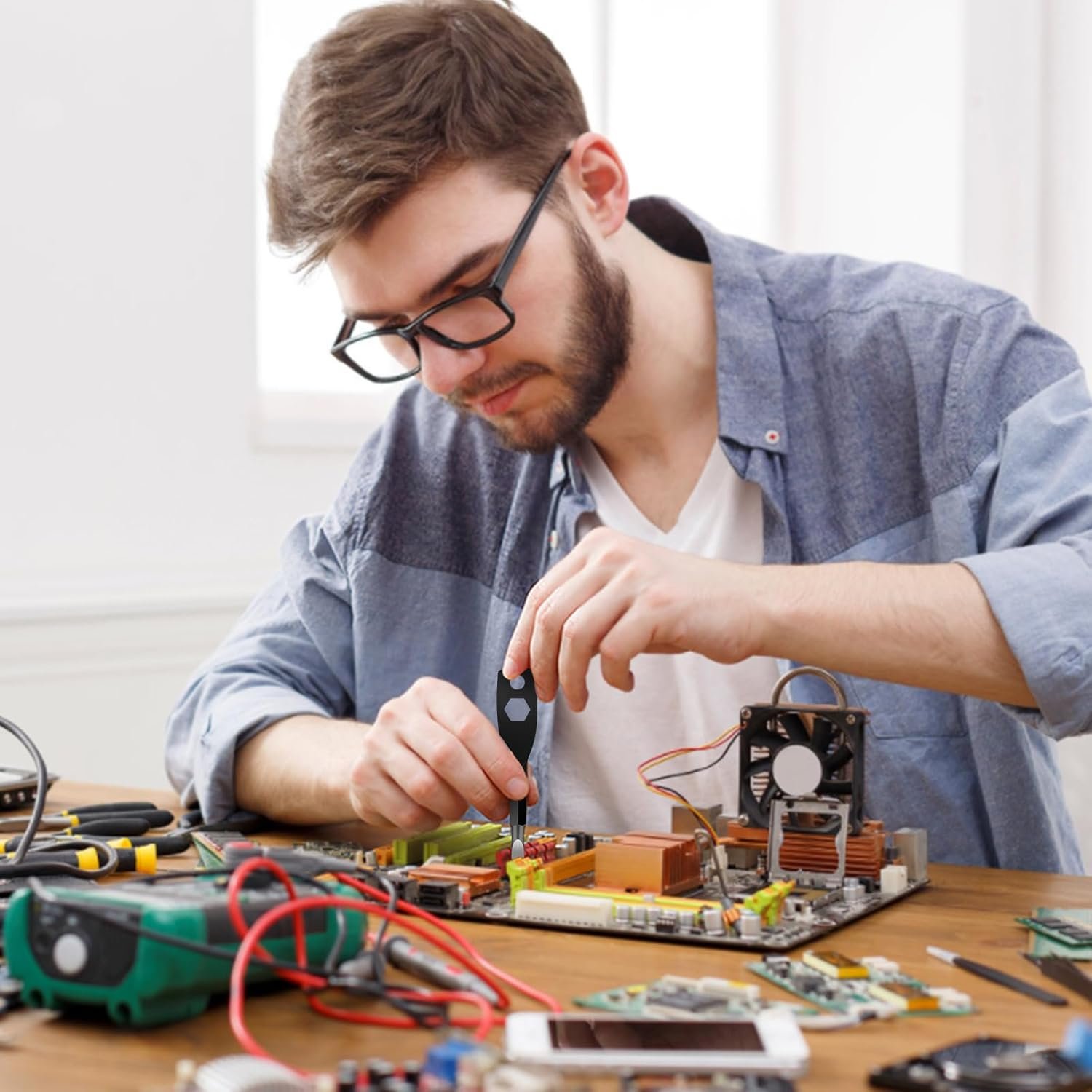 【Compact & Practical】–This multi screwdriver set is perfect for quick fixes on the go, especially in tight spaces. It is made of high quality steel, heat-treated screwdrivers become harder and more resistant, not easy to be bent that is durable for long time using, the plastic handle protects your hands and makes work easier
