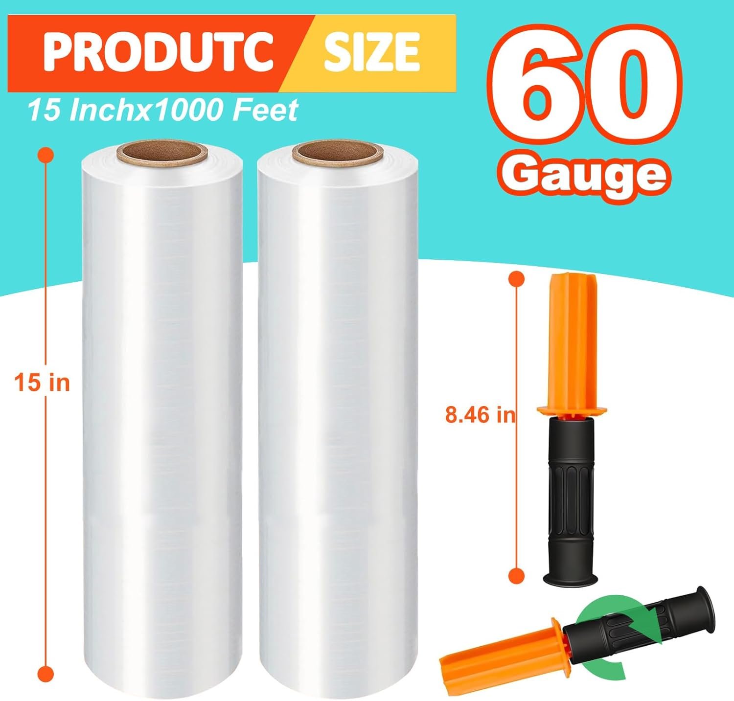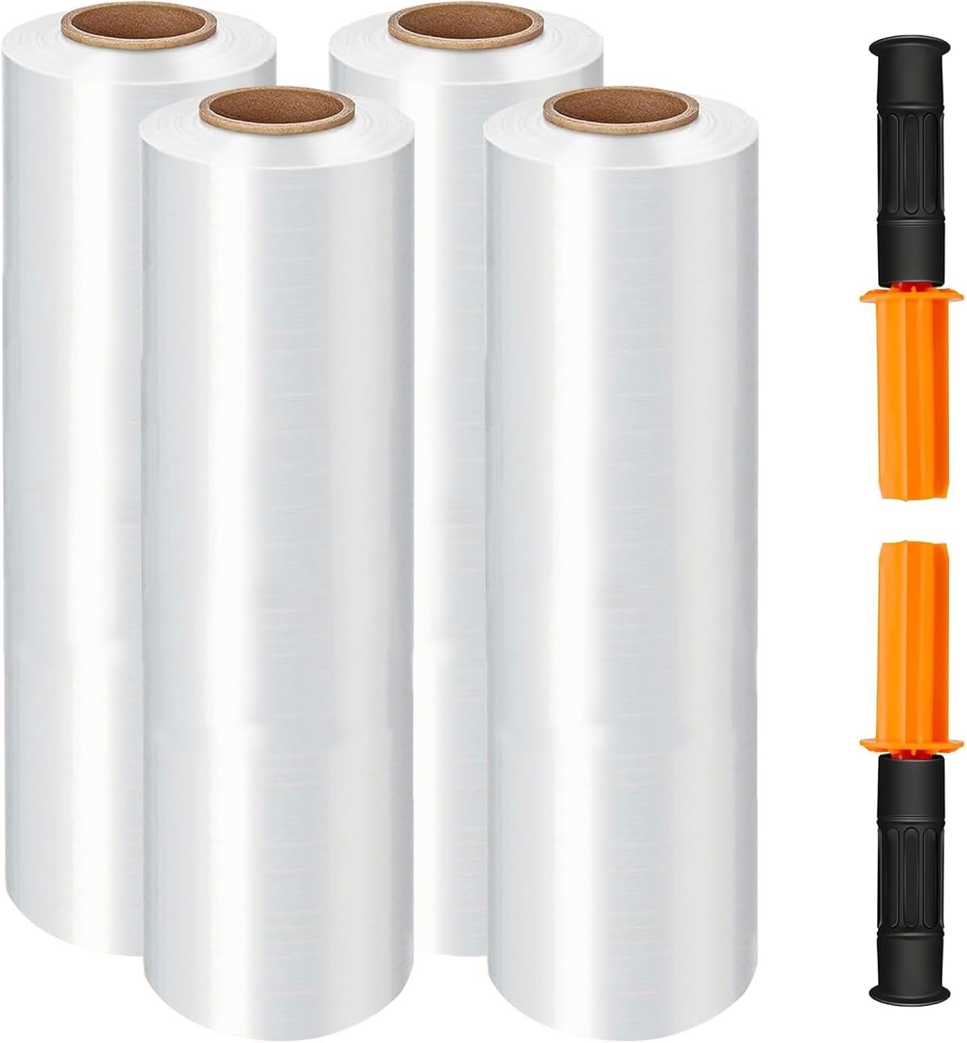 【Easy to Install】Package includes 4 rolls of stretch film and 2 handles. Simply insert the handles into the ends of the rolls to begin wrapping. Protect your hands and get the job done faster. Faster and more efficient.
