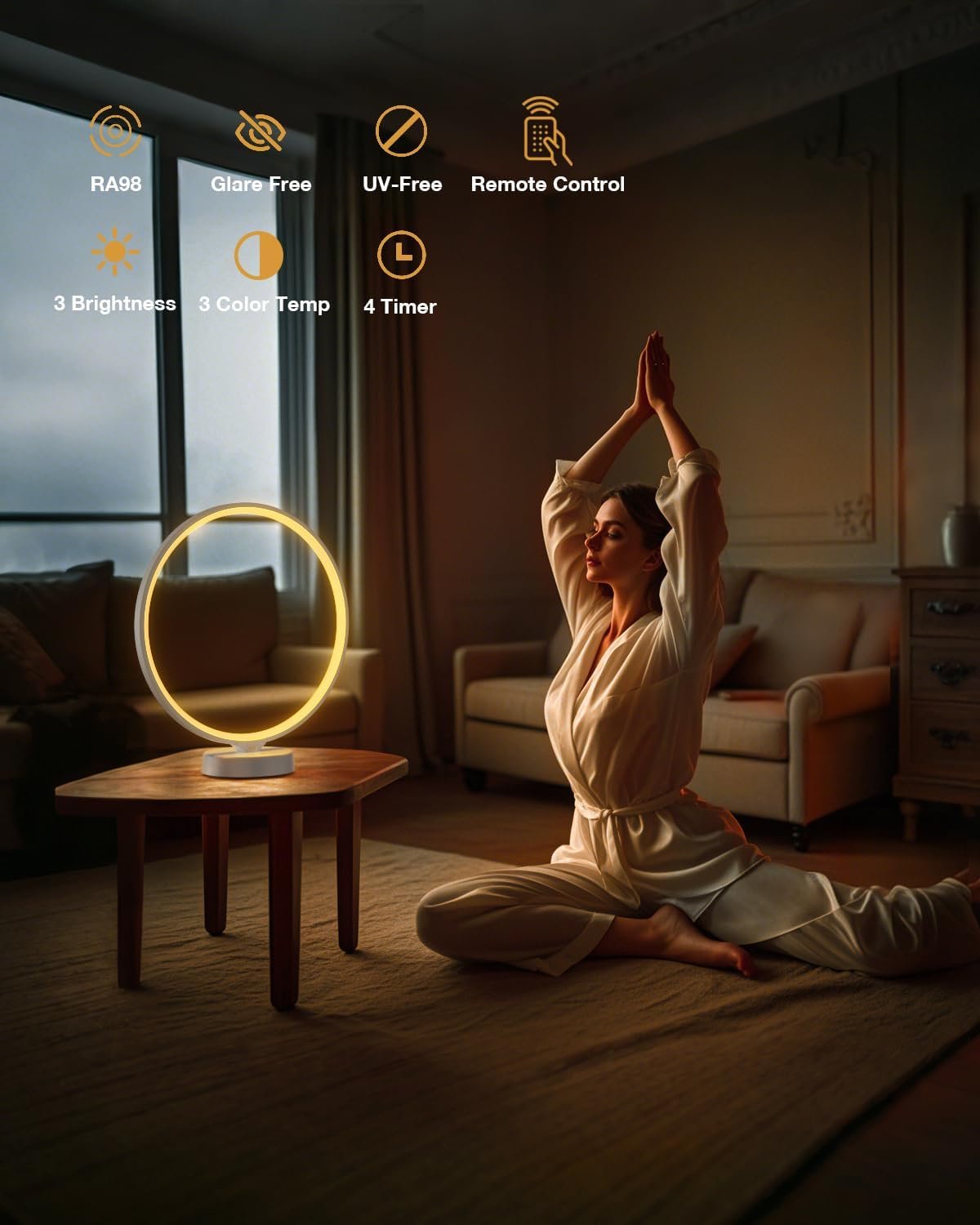3 COLOR TEMPERATURES: 2700K warm light for dawn tea rituals, 4000K natural light for desk productivity, 6000K cool light glow to reignite 3pm energy, every moment has your own personal sunlight