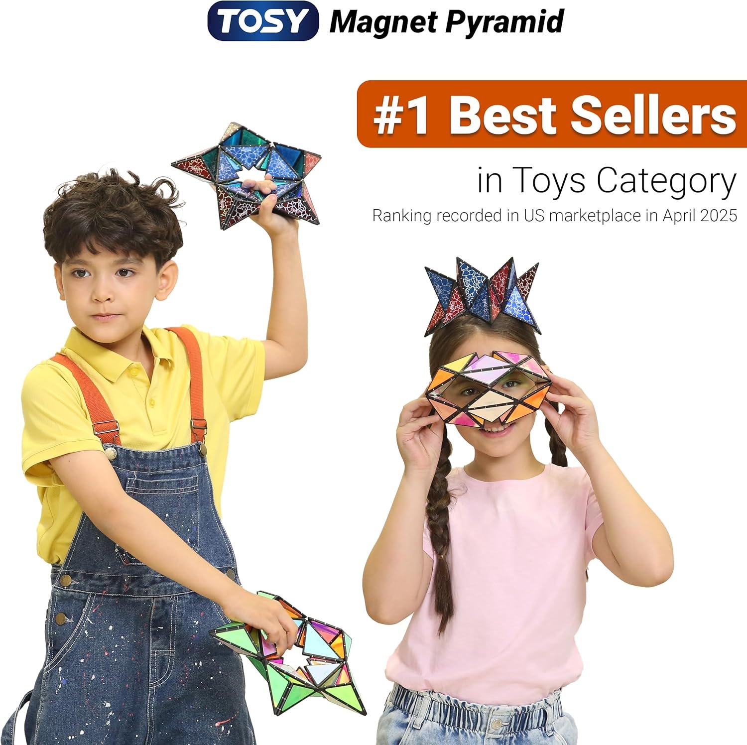 1 BILLION SHAPES – Featuring 243 rare earth magnets, the patent-pending TOSY Magnet Pyramid helps you unlock your endless creativity and relaxing your mind. The included spinner accessory gives you even more possibilities for innovative transformations