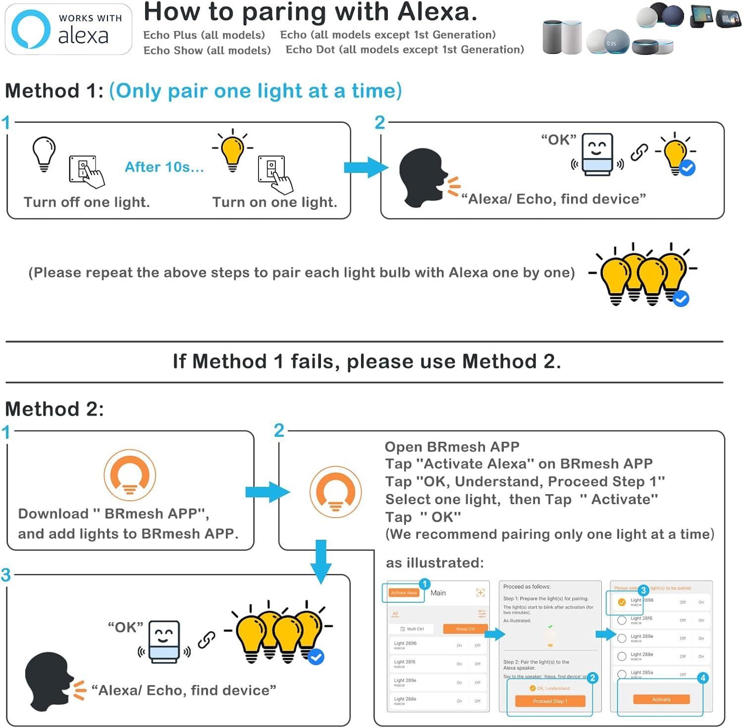 (2) If the BRmesh APP is no longer needed nor desired, it can be deleted after the paring with the light(s) is complete with Alexa without affecting the use of the light(s).