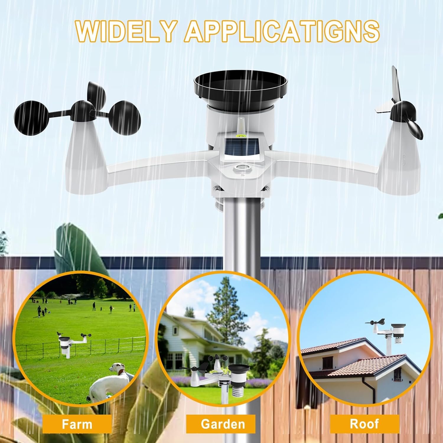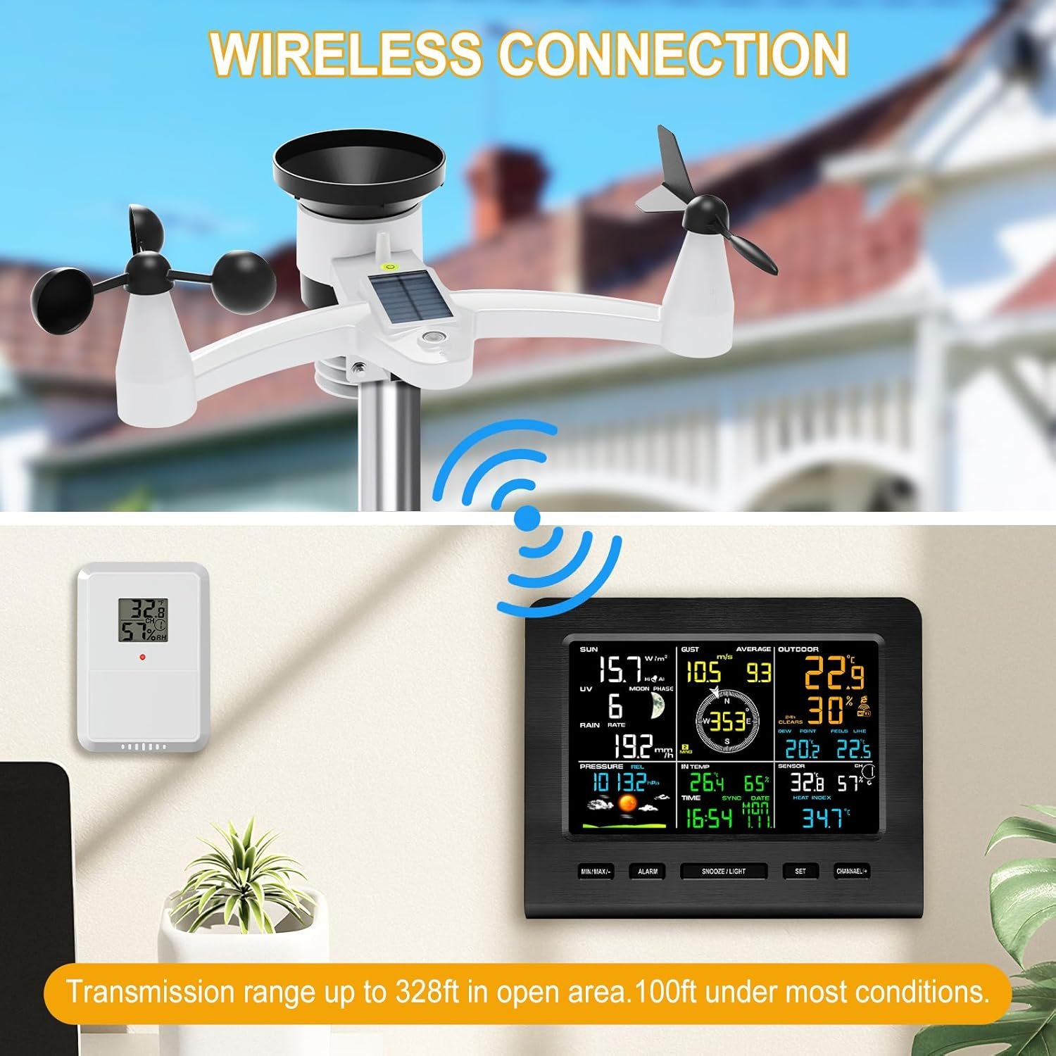 Stable Wireless Transmission Range up to 328ft and Installation:Equipped with easy-to -follow manual for effortless configuration. With a range of up to 328ft/100m, ensures reliable data transfer without wiring. Waterproof easy-to mount wind vane and wind cup is convenient and flexible to set up in garden, lawn, patio or on roof/fence, perfect for homeowners, farmers or amateur meteorologists