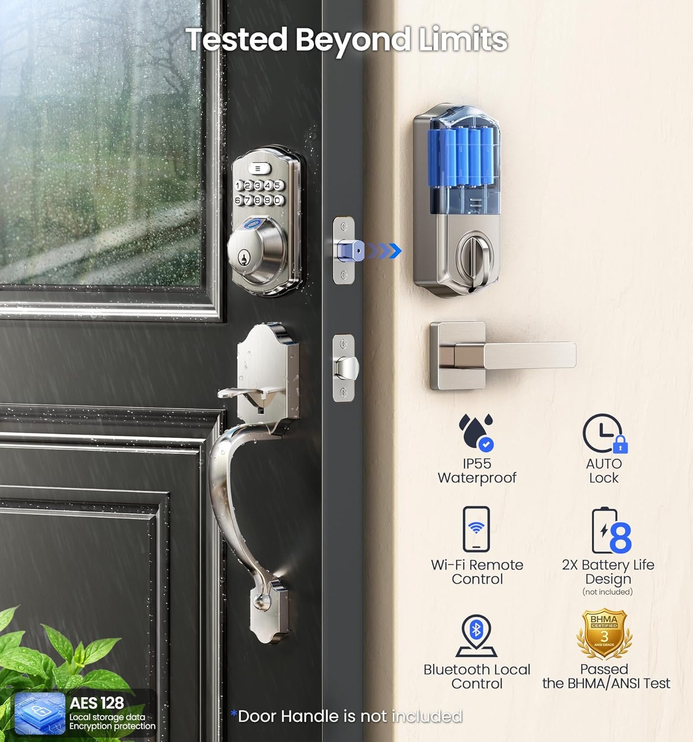 Unlock Anywhere, No Hub Needed: Built-in WiFi lock breaks free from Bluetooth distance limits, enabling remote programming and user management from anywhere. Works with widely used smart home ecosystems to be your smart manager