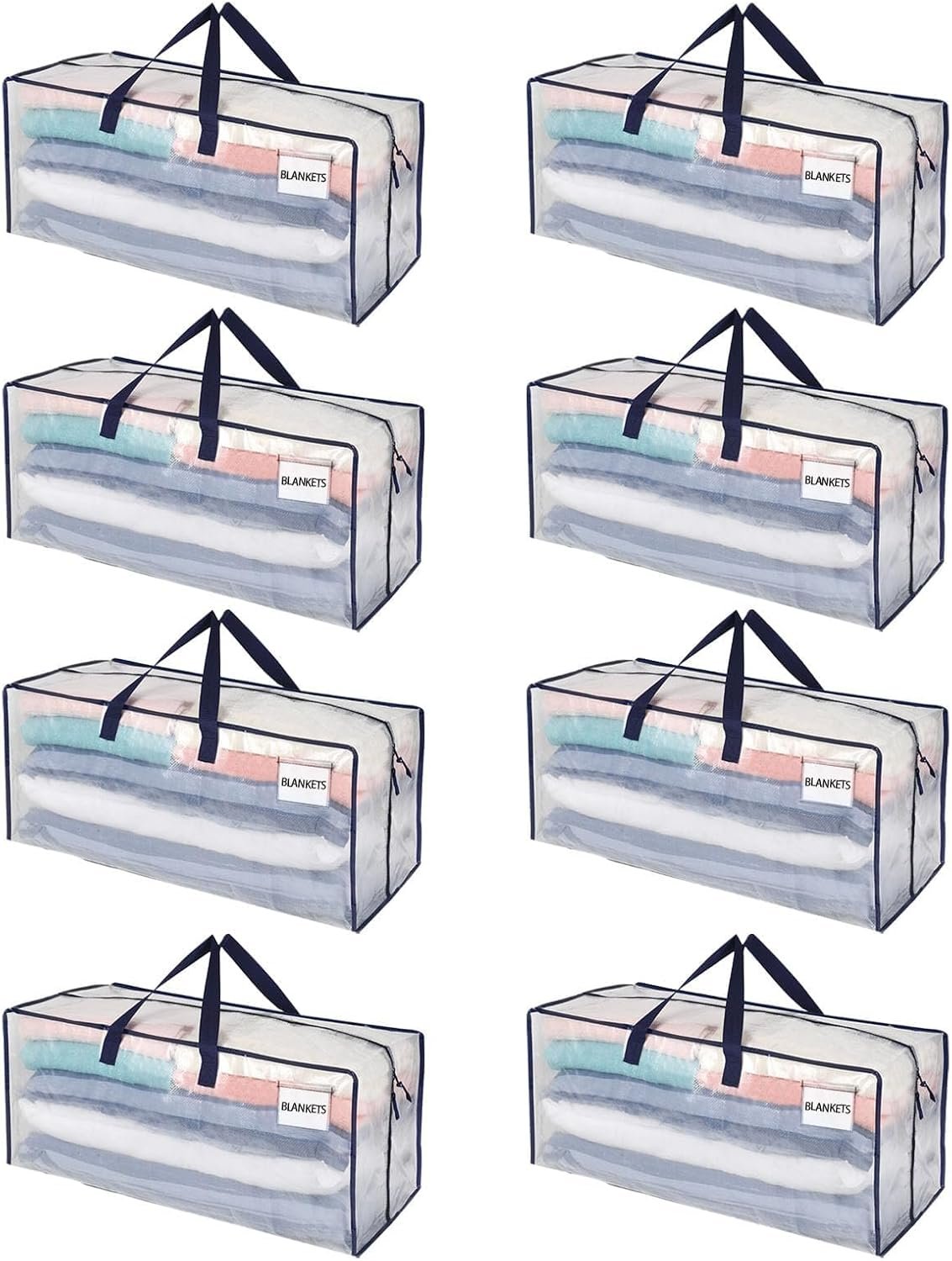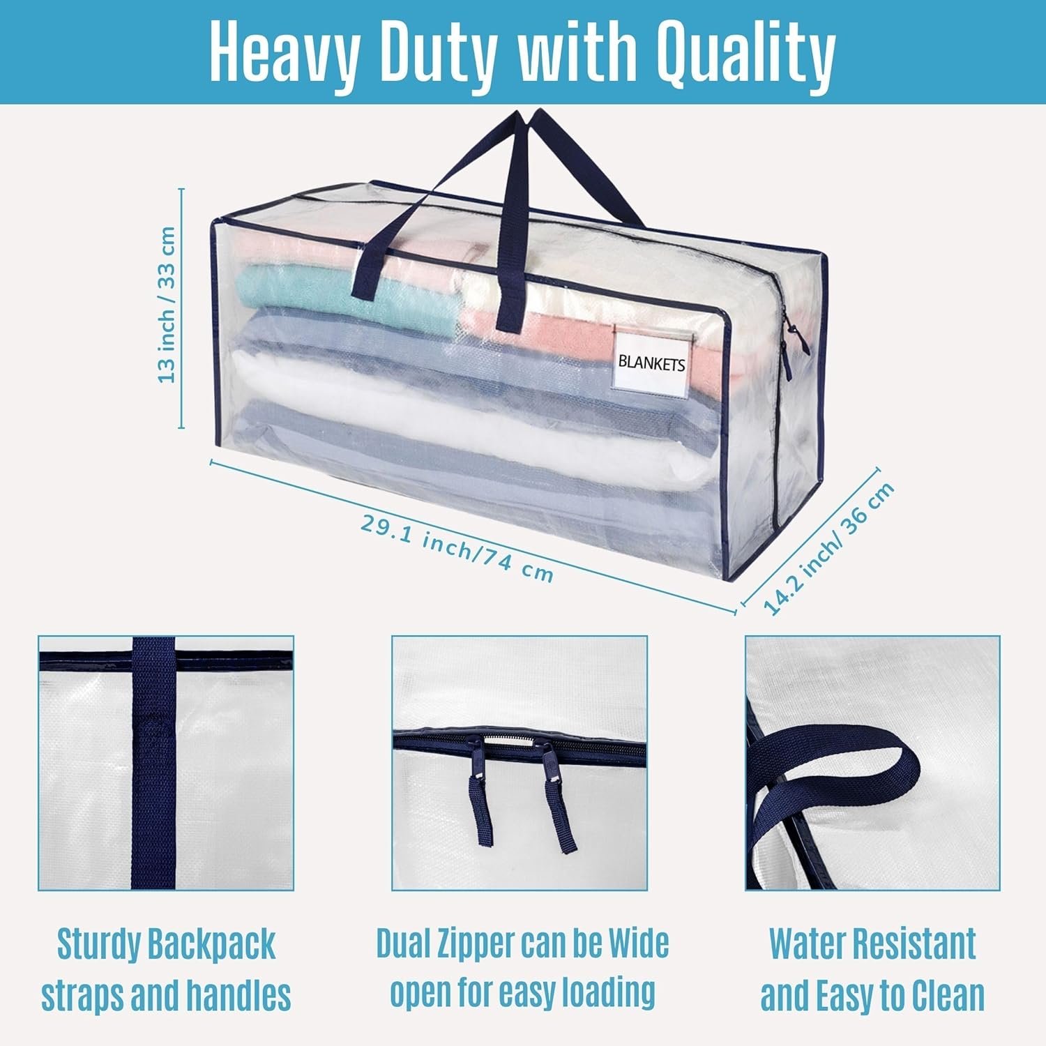 Clear Tag Pocket & Wide Opening – Say goodbye to the frustration of searching for your belongings. Make a custom label and insert it into the clear tag pocket for easy identification of items like blankets, bedding, pillows, and clothes,. Remember to use this labeling feature for organizing college dorm room essentials, moving to a new home, or storing items in the garage. The bag is equipped with dual extended zippers, creating a wide opening that allows for effortless access to stored items.