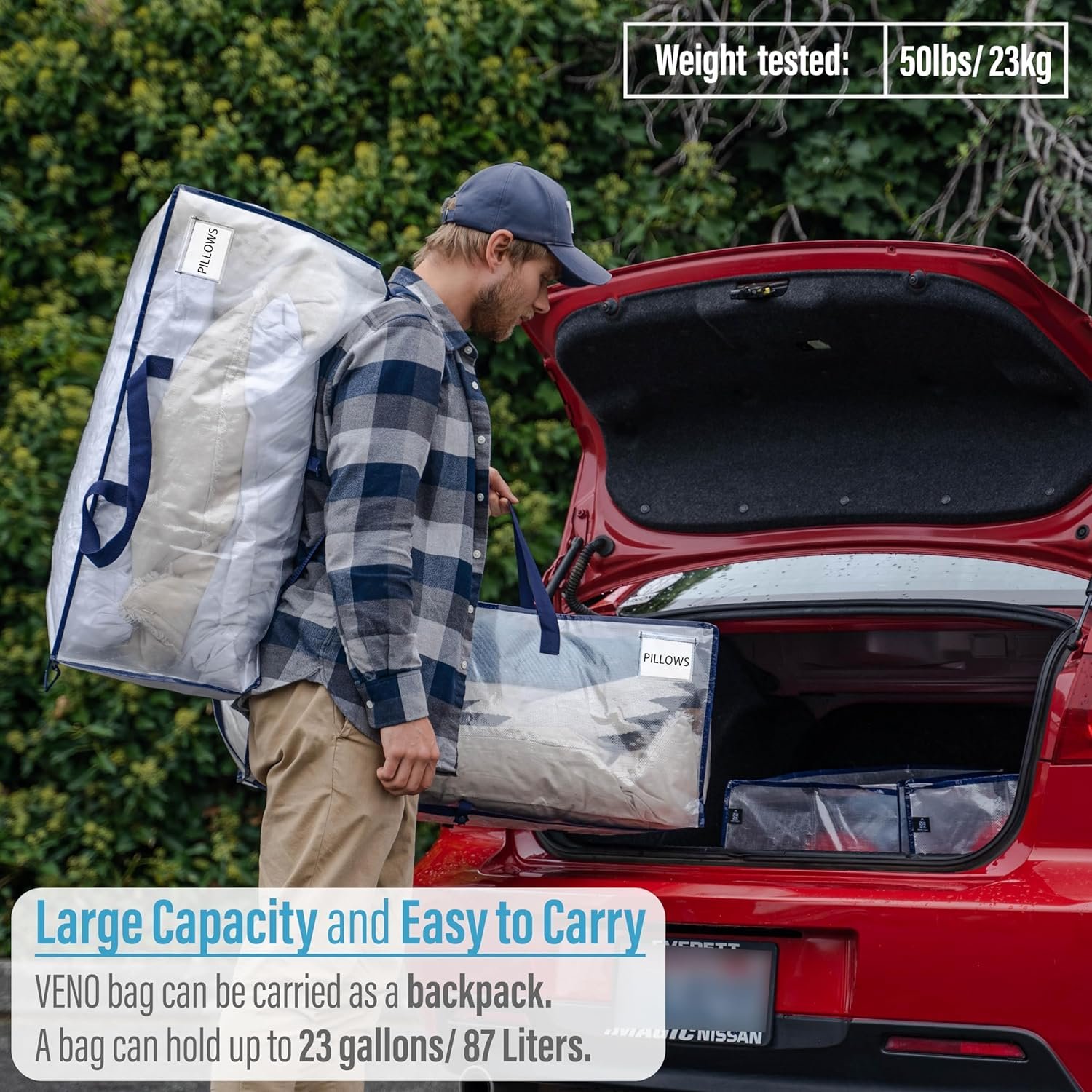 Dual Carrying Options w/ Backpack Straps & Handles – Carry heavy loads effortlessly with VENO’s versatile storage & moving bags. Designed with robust poly webbing straps, our packing bags can be worn like a backpack or carried using the strong handles. Capable of holding up to 50 pounds and offering 23 gallons of space, VENO bags ensure durability and water-resistance with PP-woven material.VENO bags are sustainable and reusable, designed for convenience and durability. 29.1″L x 14.2″W x 13″H.