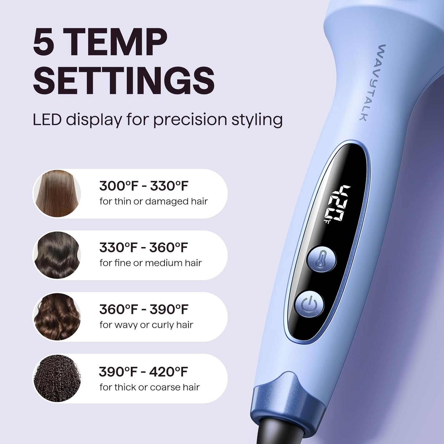 5 Temperature Settings & LED Digital Display: Wavytalk thermal round brush offers multiple temperature options, allowing better control during styling to achieve optimal results while minimizing heat damage. 300℉/330℉ for thin or damaged hair; 360℉ for normal hair; 390℉/420℉ for thick or coarse hair.