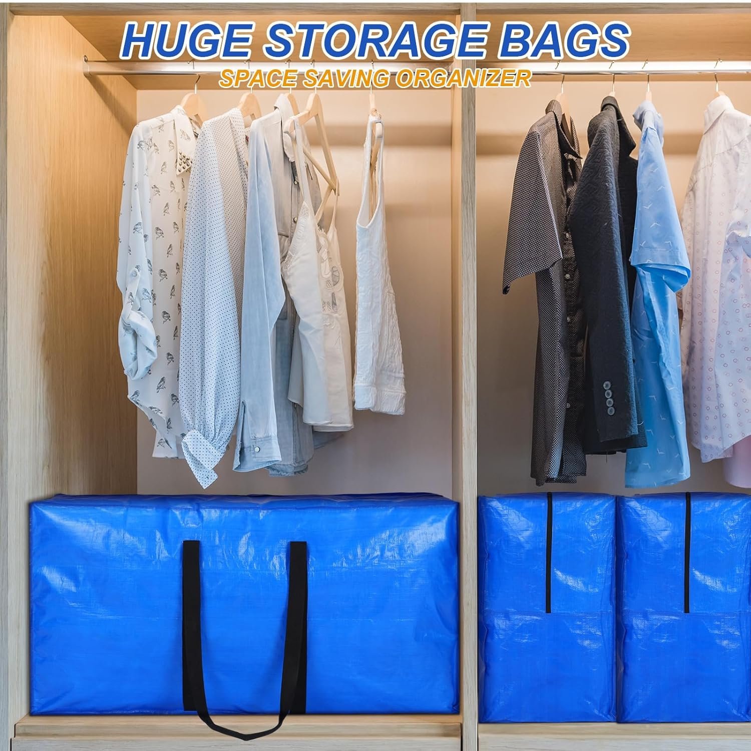 Easy Access with Opening Design and Sturdy Handles: the large moving bags are equipped with wide opening and double zippers; This thoughtful design ensures smooth and easy access to your stored items; The reinforced handles make moving the bags effortless, ensuring convenience; Contained within, your belongings remain secure, yet easily reachable