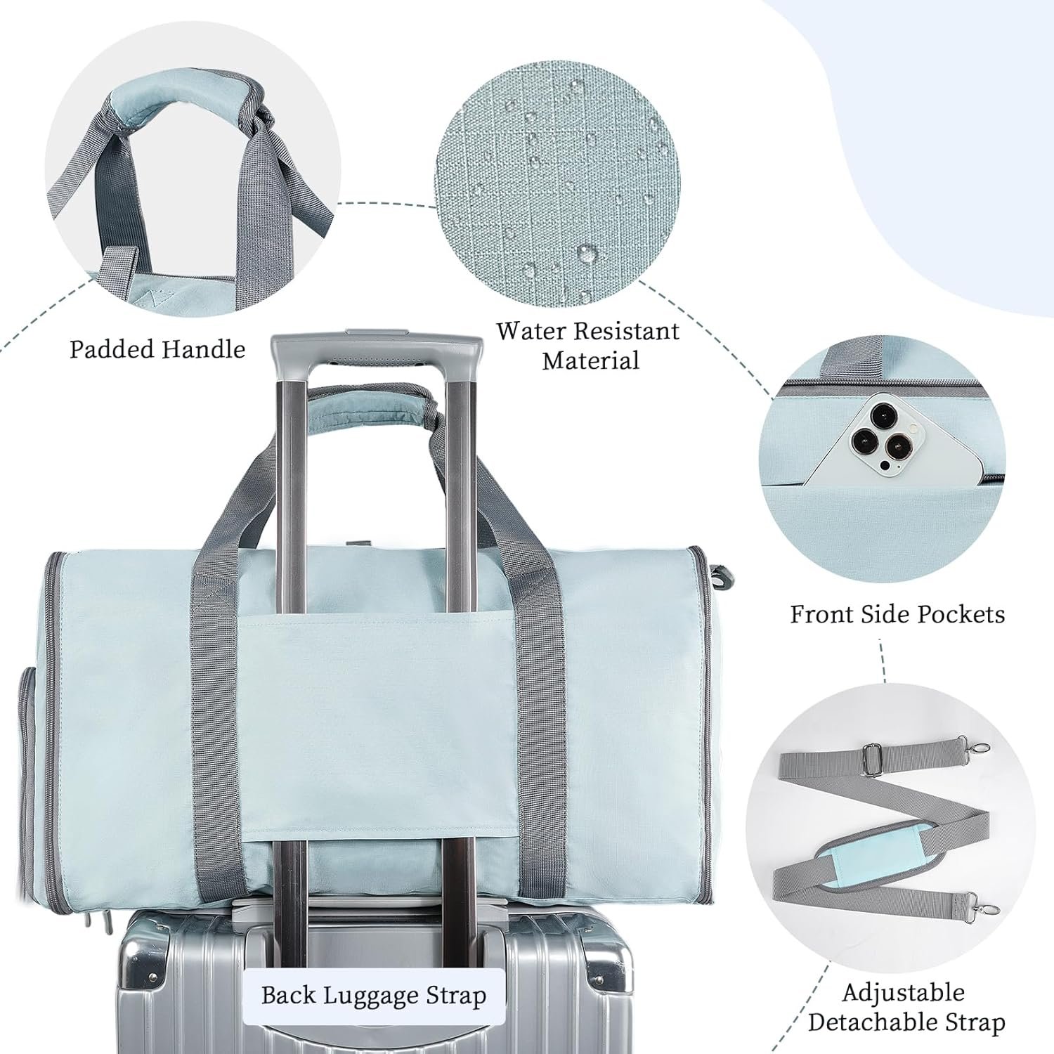 EASY TO CARRY: Using the detachable and adjustable shoulder strap, carry it as handbag, shoulder bag or cross bag according to your needs. With the the back luggage strap to slip it over luggage handles to offer you better usage experience. Unfold this duffle bag to avoid excess baggage fees, pack souvenirs, or move items from a damaged suitcase. This luggage bag is an airport saviour
