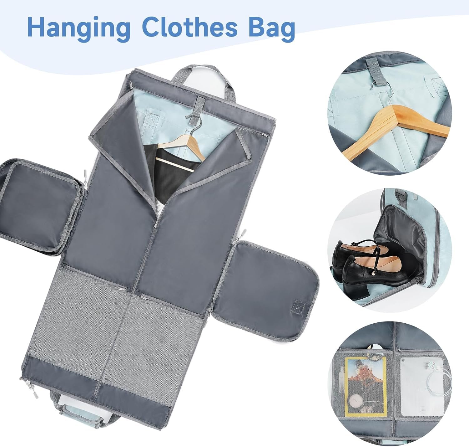 PREMIUM MATERIAL: With high-quality polyester fabric and high strength zipper, this convertible garment bag is scratch-resistant, anti-tear & anti water splashing. The padded handles relieve pressure on your hands or shoulder, make your travel fun and stress-free, no worries about break issues when traveling. Fits for quick weekend trip or short-time trips