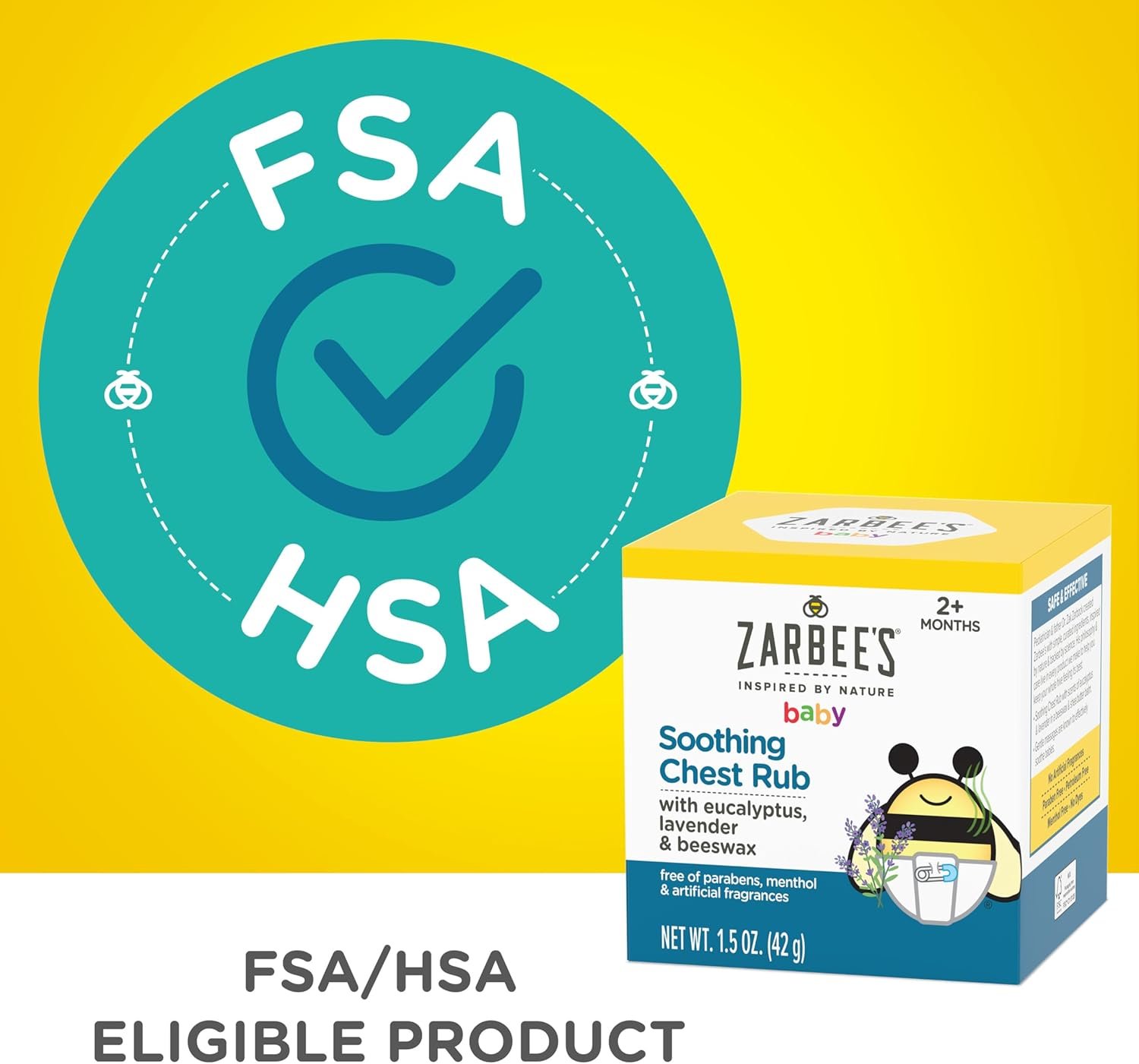 Zarbees Baby Soothing Chest Rub is a petroleum-free chest rub for babies that features a blend of eucalyptus & lavender oils in a beeswax & shea butter balm to help soothe your little one without harsh chemicals or toxins. Made for infants 2 months+; this non-irritating balm is specially formulated for baby’s sensitive skin. Massage it onto the chest; neck; back; & bottom of the feet. This gentle; safe & effective chest rub is made with no artificial fragrances or dyes and smells great. Pediatrician recommended chest rub soothes gently on babies and is a great option for sensitive skin. This product is produced by Zarbee’s; the makers of the #1 Pediatrician Recommended Cough Syrupⱡ Brand for Babies & Kids 12 & under. ⱡSoothes coughs associated with hoarseness; dry throat and irritants.* *These statements have not been evaluated by the Food and Drug Administration. This product is not intended to diagnose; treat; cure; or prevent any disease.